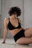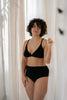 Für unsere Produkte verwenden wir nur die nachhaltigsten Materialien, die wir ebenfalls möglichst lokal beziehen. Zum Beispiel TENCEL™ Lyocell, eine sehr ressourcenschonende Faser, die unter anderem aus dem Holz von Eukalyptus gewonnen wird, oder Spitze aus recycelten Fasern.